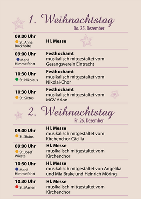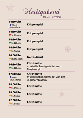 Herzliche Einladung zu den Krippenspielen, Weihnachtsgottesdiensten und Gottesdiensten zum Jahreswechsel in unserer Pfarreiengemeinschaft: