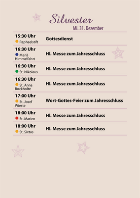 Gottesdienste zu Weihnachten und zum Jahreswechsel