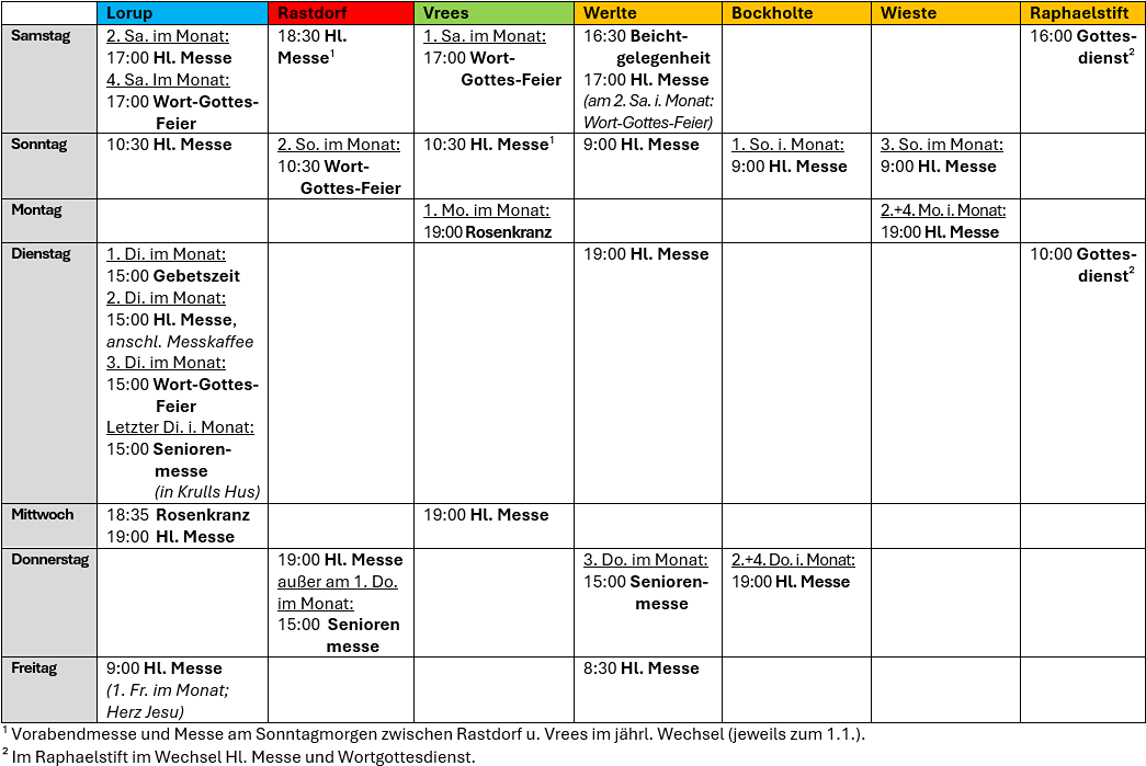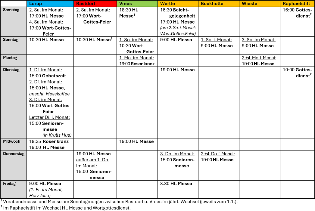 Aktuelle Änderungen und zusätzliche Gottesdienste finden Sie im