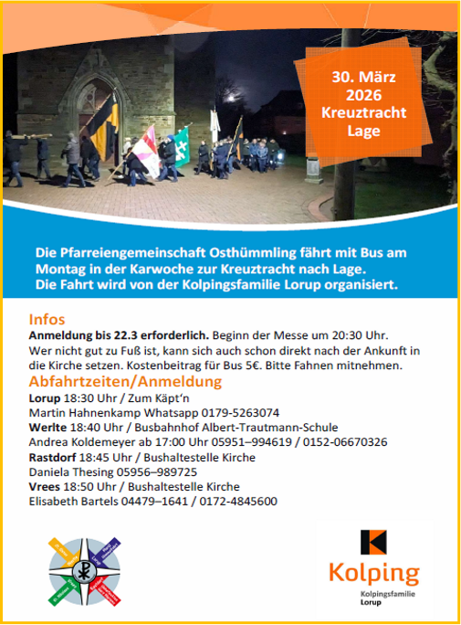 ob bei besinnlichen Gottesdiensten, musikalischen Abenden oder fröhlichen Familienaktionen - lassen Sie uns gemeinsam aufbrechen und die Fastenzeit bewusst erleben, um Ostern mit Freude und Hoffnung zu feiern.