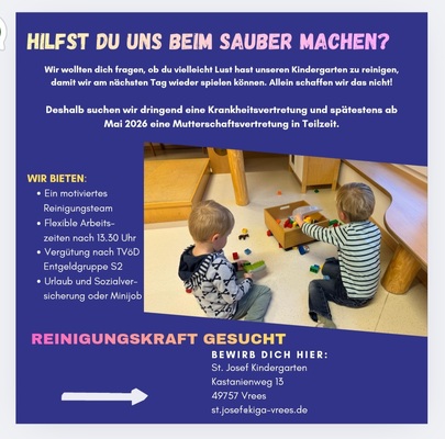 Reinigungskraft gesucht (Kita St. Josef, Vrees)