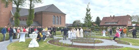Am Sonntag, den 04. Mai 2025, im Anschluss an das Hochamt segnete unserer Pfarrer Peter Winkeljohann im Rahmen einer kleinen Andacht unsere neue Begegnungsstätte auf dem Friedhof. Mit einem Präsent bedankten wir uns wertschätzend bei Marco Bowe, der ehrenamtlich die Planung und Zeichnung der parkähnlichen Anlage übernommen hatte. Einen Blumenstrauß überreichten wir Frau Sommer, die stellvertretend für die Firma ihres Mannes Sommer Gartengestaltung, anwesend war, für die tolle Umsetzung und Fertigstellung der Anlage. Ein besonderer Dank gilt den Vertretern der politischen Gemeinde sowie der Raiffeisenbank Lorup, die durch ihre großzügige finanzielle Unterstützung dieses tolle Projekt ermöglichten. Auch sie erhielten zum Dank ein Präsent. Trotz der kühlen Temperaturen nahmen viele Gottesdienstbesucher hieran teil. Auch dafür vielen Dank!